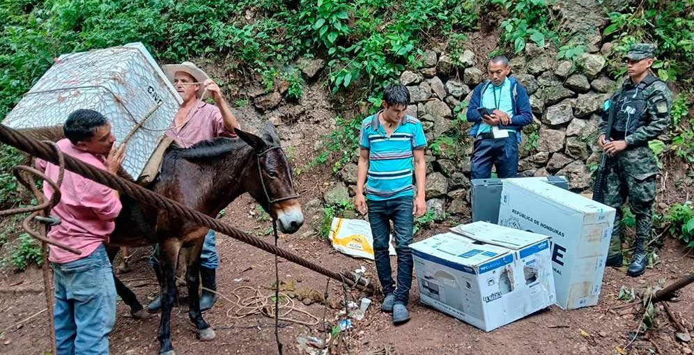 En animales de carga, lanchas, canoas, camiones, patrullas, entre otros medios de transporte se entregó todo el material electoral, para que los hondureños acudan a las urnas, en una fiesta hoy 30 de noviembre.