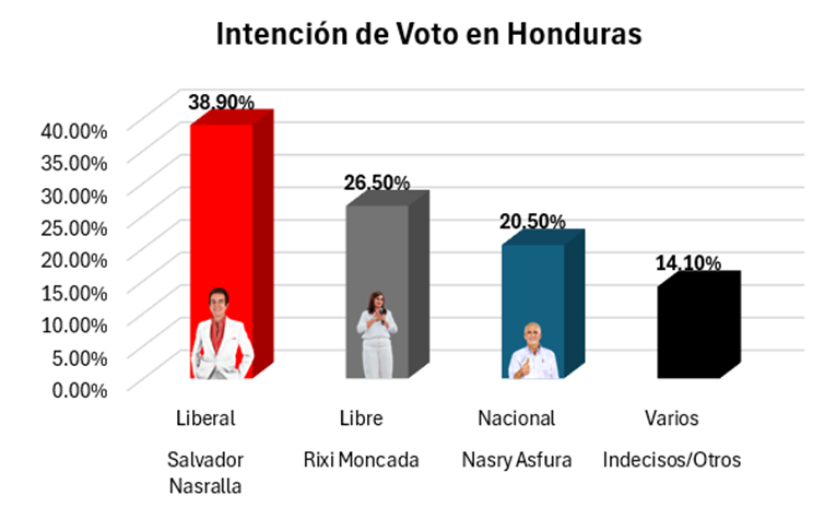 El nuevo seguimiento de la intención de voto muestra una reconfiguración de la contienda, destacando el fuerte crecimiento de Salvador Nasralla y la caída de Nasry Asfura. Los números son categóricos: Salvador Nasralla se posiciona en primer lugar con un 38.9%, ampliando su ventaja y consolidando su liderato con una diferencia de 12.4 puntos sobre la candidata de Libre. Este margen, superior a los diez puntos, no solo lo pone a la cabeza, sino que lo perfila ya como el próximo presidente de la República, capitalizando el descontento generado por la gestión gubernamental y logrando desvincularse de las alianzas pasadas, un movimiento que ha resonado profundamente en el electorado indeciso.